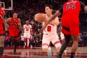 GIF-河村勇辉反击不看人背传 助攻布泽利斯反击上篮打进