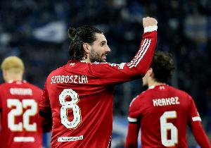 体育资讯2月9日讯 本轮英超焦点战,利物浦主场1-0领先曼城,索博斯洛伊直接任意球破门。