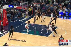 GIF-落后2分 开拓者选择给夏普自己单打 后仰中投不中
