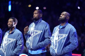 本赛季至今,詹姆斯场均得到22分,杜兰特场均25.8分。