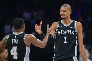 文班亚马此役发挥全面,出战24分钟45秒,15投7中,三分4投1中,罚球2罚2中,得到17分11篮板4助攻5盖帽;福克斯出战22分钟,投篮9中4,三分5中2,罚球6中5,得到15分3篮板8助攻。