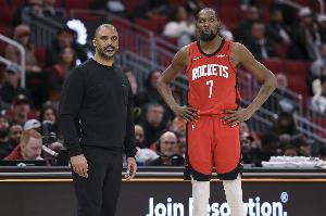 乌度卡:“不,老实说,我不觉得问题出在杜兰特身上,节初阶段他确实得到了一些不错的出手机会,也进了几个。但是,当我们想要打单打战术时,必须确保每个人都在正确的落位点上保持空间,而不是随意发挥,所以我们有专门的战术套路,让球员进入他们舒服的区域落位,其他队员则围绕他们保持合适的空间,这才是我想强调的重点。”