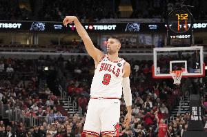 上半场,公牛中锋武切维奇高效发挥,出场16分钟8投6中,三分1中1拿到13分7篮板2助攻,正负值+1。