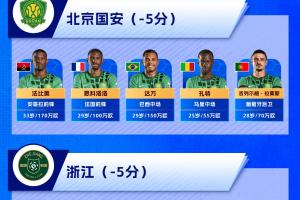 浙江(5):卢卡斯、米特里策、朴镇燮托利奇瓜里拉帕