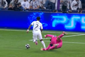 维尼修斯跳步主罚被多纳鲁马扑出。