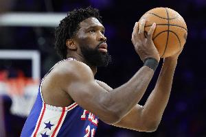 首节恩比德就拿到14分,末节最后时刻送出关键大帽。