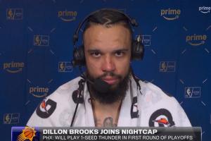 赛后,狄龙接受采访时谈到了对阵雷霆的心态。他说道:“相信我们每天都在做的事,努力打球,珍惜每一个回合,对阵NBA里的任何人,我都相信我的队友。我们会‘偷走’G1的胜利。”